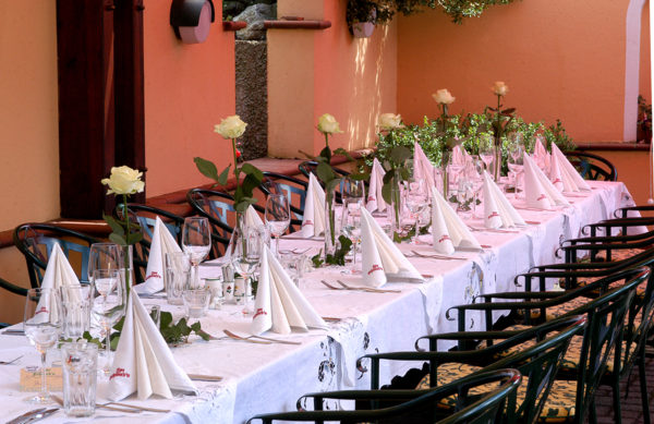 Nehmen Sie Platz in unserem beschatteten Gastgarten und genießen Sie Ihren Tag.