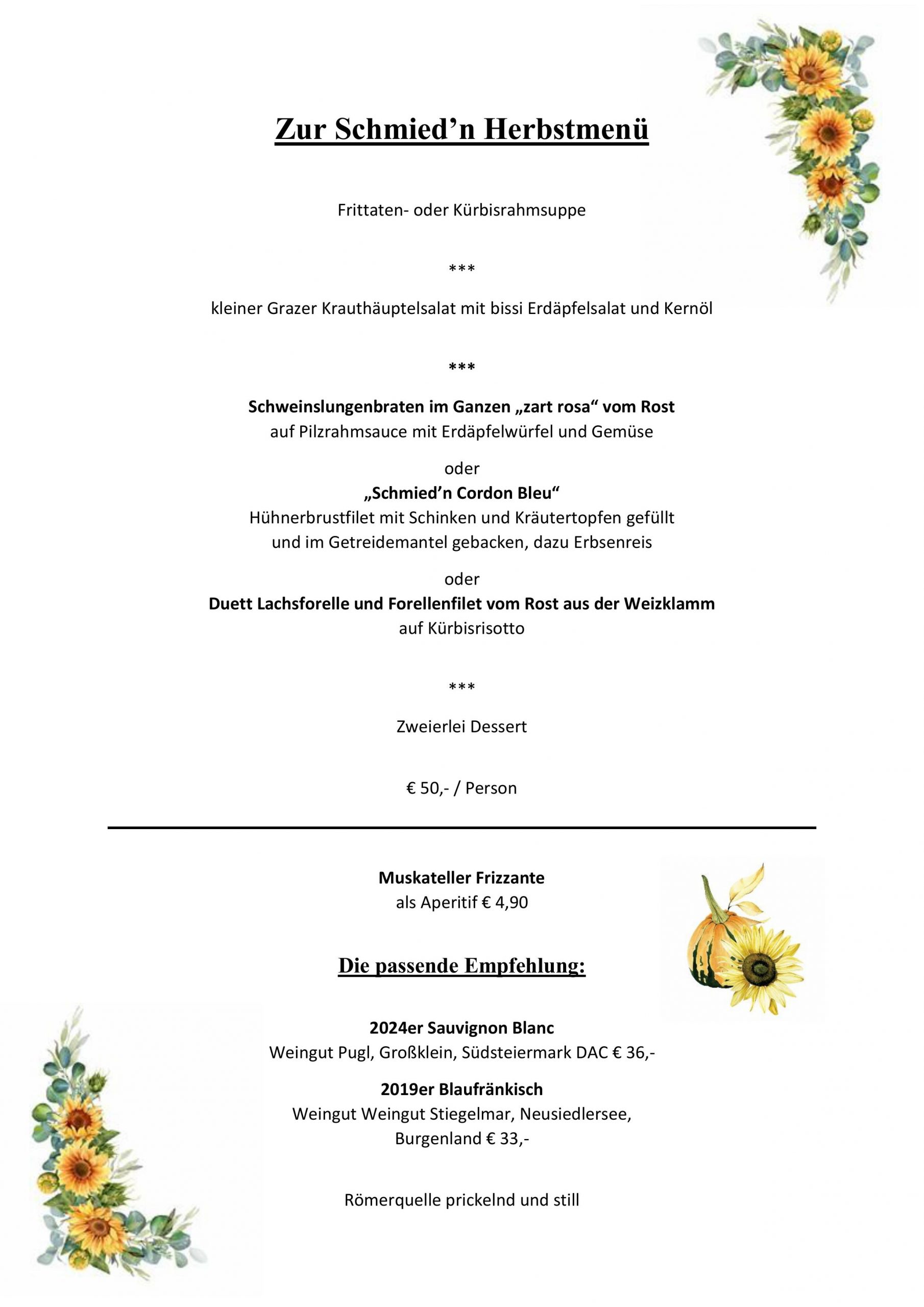 Wir heißen Sie zu Ihrer Feierlichkeit herzlich willkommen – ob Privat- oder Firmenfeier! Unser steirisches Gasthaus mit authentischer und bodenständiger Küche bietet Ihnen einen speziell zusammengestellten Menüvorschlag für Ihre Gruppenreservierung, welcher der Schlüssel zu einer gelungenen Feier ist. Aus diesem Grund laden wir Sie ein, durch unseren saisonalen Menüvorschlag zu stöbern. Unsere Speisen werden mit frischen, regionalen Zutaten zubereitet und spiegeln die Vielfalt der steirischen Küche wider.